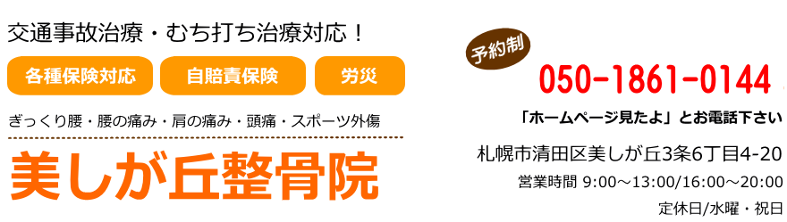 【札幌市清田区美しが丘で整骨院なら、交通事故治療対応】美しが丘整骨院